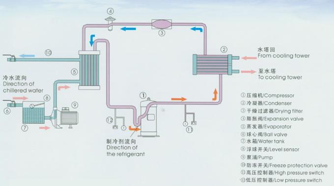 螺桿式中低溫冷水機(jī)組工作原理: