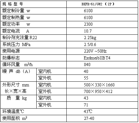 BKFR-61/GW2柜式防爆空調(diào)技術(shù)參數(shù)